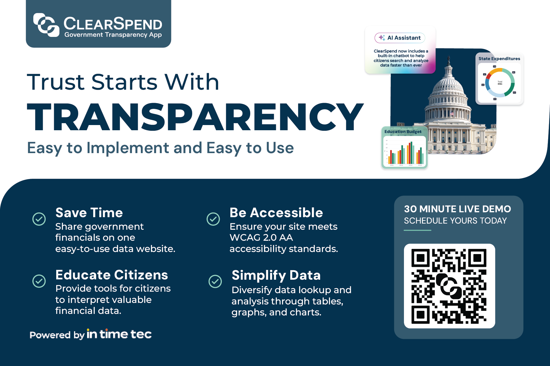ClearSpend provides a streamlined solution that enables governments to share financials. It simplifies the complexities of transparency efforts, ensuring states meet mandates and public expectations for open governance. The visual identity was developed in collaboration with another designer. Since its launch, art direction has guided the creation of brand assets and marketing deliverables, ensuring consistency and alignment across all touchpoints.